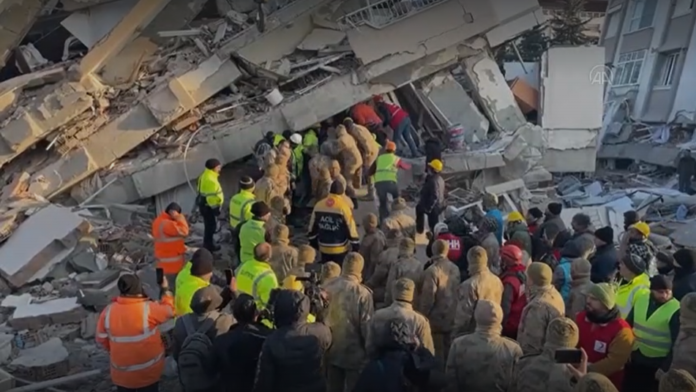 Hatay’ın Antakya ilçesi Güzelburç Mahallesi’ndeki sitede, 10 ili yerle bir eden depremlerin ardından başlatılan arama kurtarma çalışmaları sürüyor.