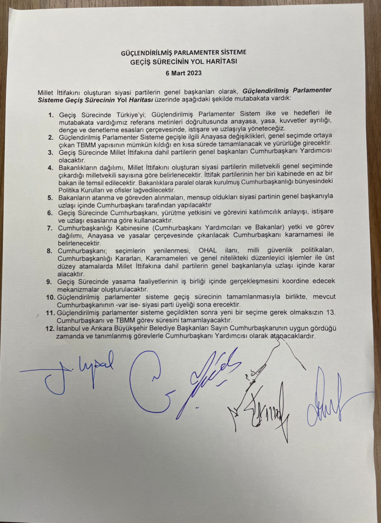 ‘Güçlendirilmiş Parlamenter Sisteme Geçiş Sürecinin Yol Haritası’ şöyle: