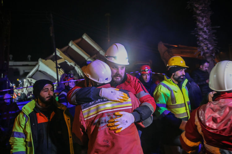 Çalışmalara katılan kurtarma ekipleriyle askerler birbirlerine sarılarak sevinç yaşadı.