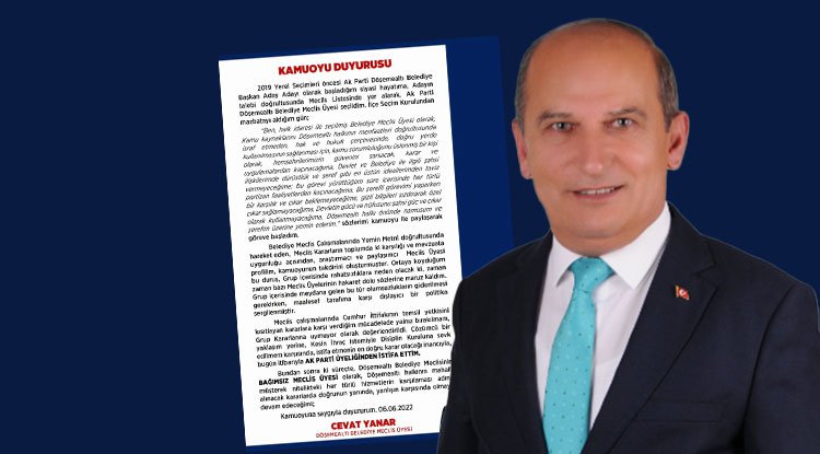 Antalya’nın Döşemealtı ilçesinde, İlçe Belediye Meclis Üyesi Cevat Yanar, AK Parti’den istifa ettiğini duyurdu.