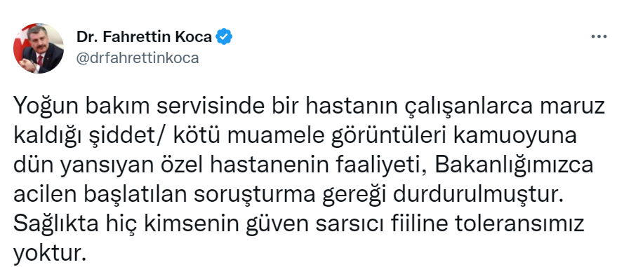 Tokat’ta bir hastanın özel hastane çalışanlarının şiddetine maruz kalmasına ilişkin soruşturma kapsamında Sağlık Bakanlığından 2 müfettiş kente gelerek incelemelere başladı. Bakan Koca özel hastanenin faaliyetinin durdurulduğunu açıkladı.