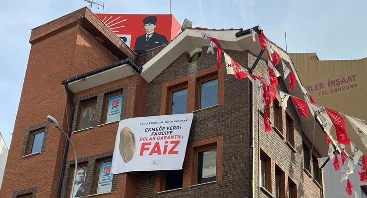 CHP’nin Eskişehir il başkanlığı binasına, iktidarın kur korumalı TL mevduat sistemine tepki göstermek amacıyla 29 Aralık’ta ‘Ekmeğe vergi, faizciye dolar garantili faiz’ yazılı pankart asıldı. Ancak il başkanı Recep Taşel, pankartın ‘kaybolduğunu’ açıkladı.