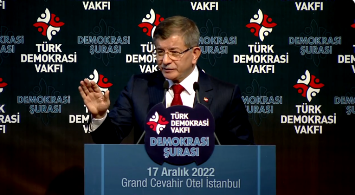 Türk Demokrasi Vakfı’nın Demokrasi Şurası’na Davutoğlu’nun yanı sıra CHP Genel Başkanı Kemal Kılıçdaroğlu, Demokrat Parti Genel Başkanı Gültekin Uysal ve İstanbul Büyükşehir Belediye Başkanı Ekrem İmamoğlu da katıldı.