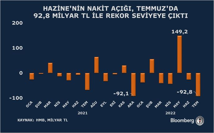Hazine Temmuz ayında 92,8 milyar lira ile rekor nakit açığı verdi.