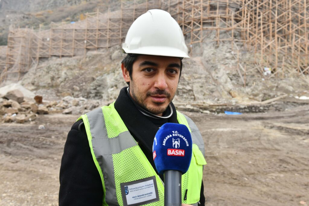 “Arkeopark projesi kapsamında çok sayıda seyir kafelerimiz, karşılama ve güvenlik merkezimiz oluşuyor. Bu bölgemizde sur duvarımızda birçok malzeme kaybı, derz boşalması ve eksiklikler vardı. Can ve mal kaybını engellemek adına burada güçlendirme çalışmalarını yaparken arkeolojik kazılarımıza devam ediyoruz. Burada yapılan restorasyon çalışmaları çağdaş tekniklere uygun şekilde sürdürülüyor. Yapılan çalışmalar doğrultusunda kışa hazırlık için arkeolojik alanımızı üzerini kapatıp prekast ayaklarla garvanize saç örtüyle tamamen koruma altına aldık. Çalışmalar kendi alanında uzman ekipler eşliğinde gerçekleştiriliyor. Roma Tiyatrosu’nda yine çağdaş teknikler içerisinde eskitme çalışmaları yürütülüyor. Cavea örtüsü tamamen bitirildi, Ankaralıların beğenisine sunulmak üzere son rötuşlarını yapıyoruz. Tiyatromuzdaki birçok bezemeli olan nitelikli olan taşların konservasyon çalışmaları yapılmış olup tamamlama çalışmalarının birçoğu bitirildi. Çalışmalarımızı 2023 yılı içerisinde tamamlamayı planlıyoruz.”