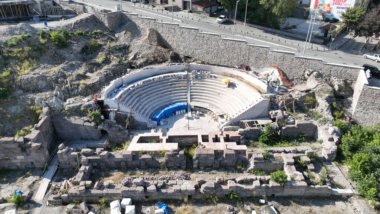 Cumhuriyet’in 100’üncü yılında Başkent turizmine kazandırılması hedeflenen tiyatroda basamak yerleştirme çalışmaları gerçekleştiriliyor.