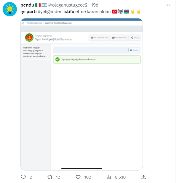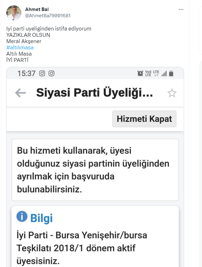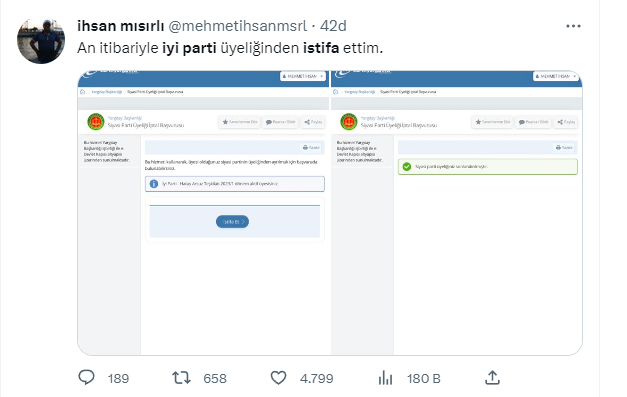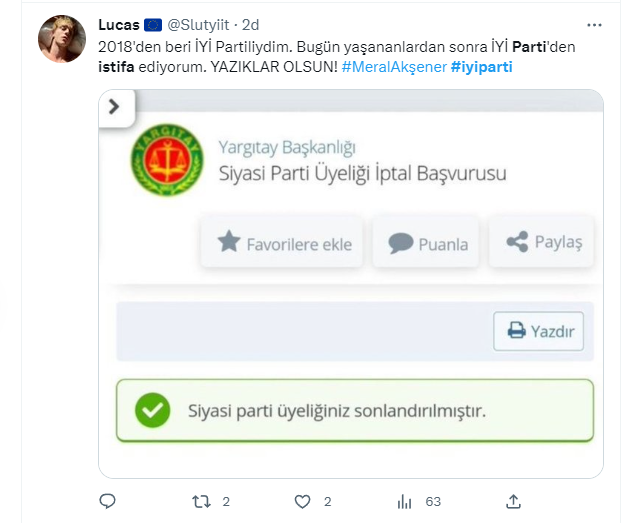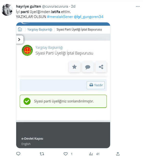 Akşener’in bu açıklamaları sonrası İYİ Parti’den peş peşe istifalar gelmeye başladı. İstifalar sonrası yoğunluk nedeniyle e-devlet’e girişte aksaklıklar yaşanıyor.