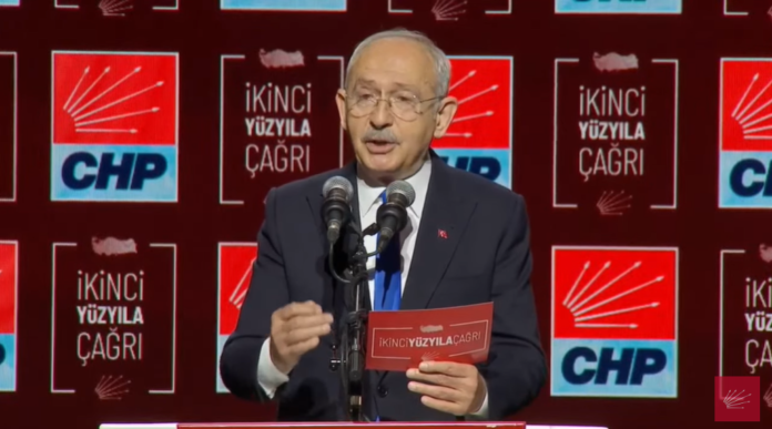 CHP, İstanbul Lütfi Kırdar Kongre Merkezi’nde, İkinci Yüzyıla Çağrı sloganıyla bir toplantı düzenliyor. Partinin vizyon belgesinin açıklandığı toplantının açılış konuşmasını CHP Genel Başkanı Kemal Kılıçdaroğlu yaptı.