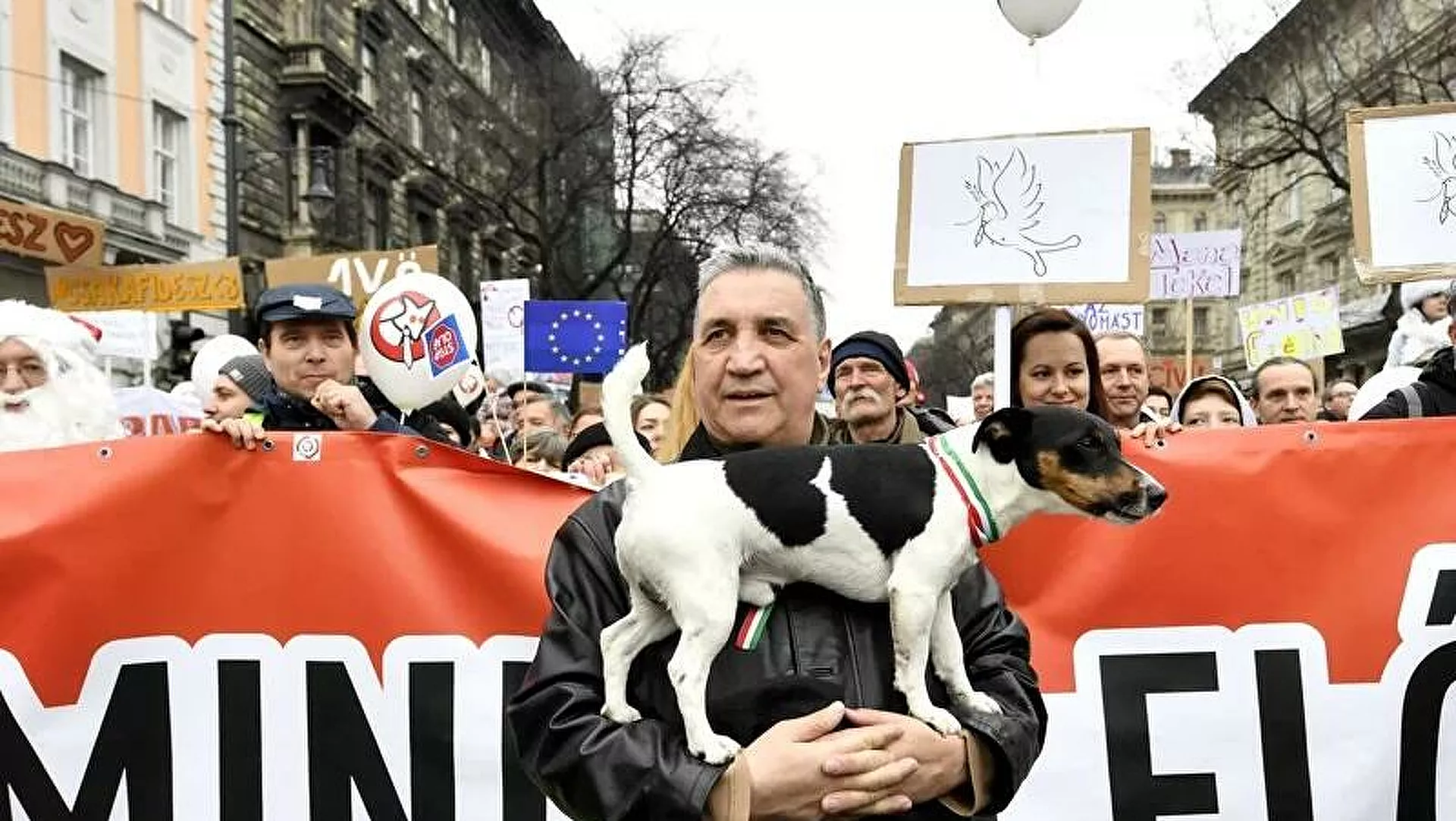 Facebook’ta geniş bir kitle kazanan İki Kuyruklu Köpek Partisi (MKKP), Orban’a karşı bulldog cinsi Huba ve labrador cinsi Rado’yu aday gösterdi. Partinin seçim sloganı ‘Ayağa kalk ve bana oy ver’ ve adaylarının vaadi ise ‘daha adil bir dünya.’