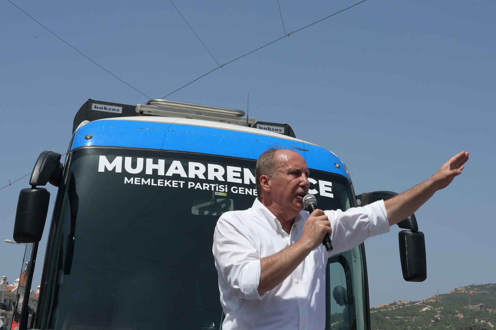 İzmir programı kapsamında Foça ilçesinde esnaf ve vatandaşlarla bir araya gelen Memleket Partisi Genel Başkanı Muharrem İnce, daha sonra Eski Foça Demokrasi Meydanı’nda vatandaşlara hitap etti.