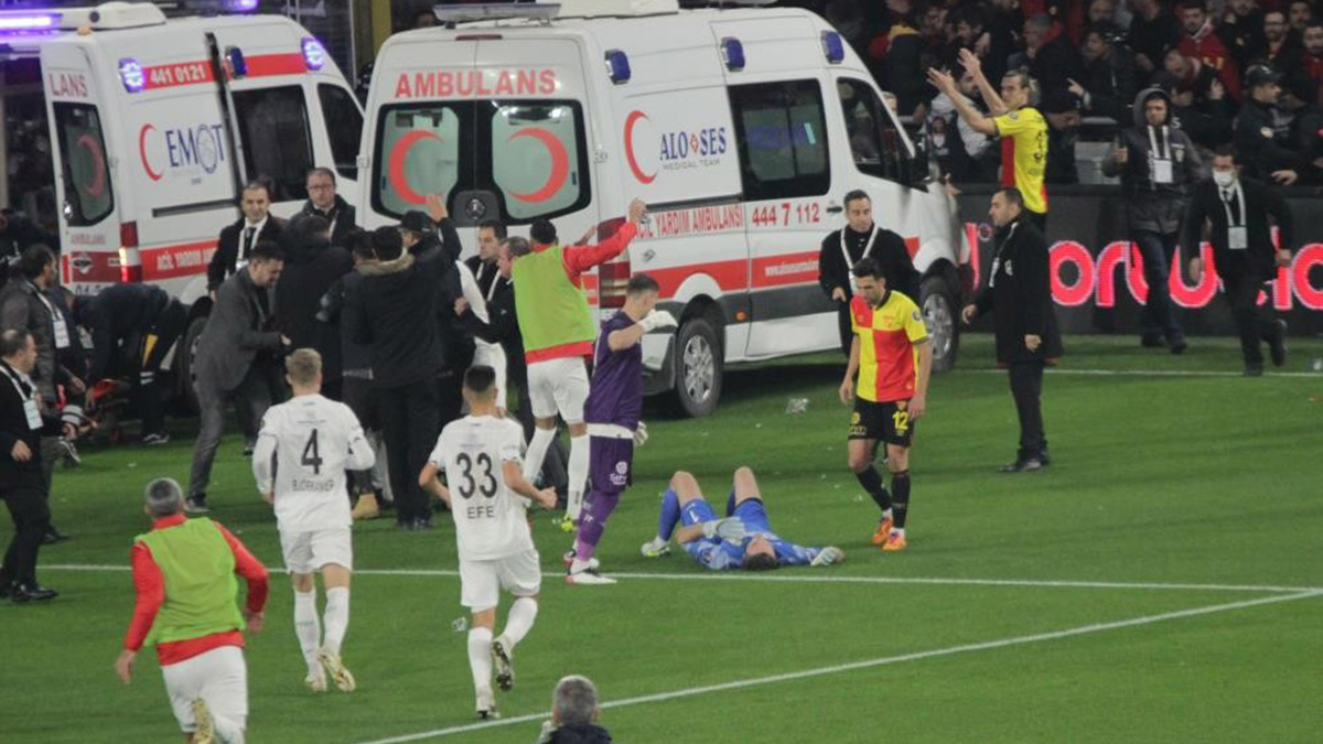 Gürsel Aksel Stadı’nda 27 Kasım’daki müsabakada Altay tribünlerinden Göztepe seyircilerinin olduğu bölüme fişek atılması sonucu yaralananların olduğu bilgisi üzerine 2 ambulans sahaya girmiş, müsabaka 22. dakikada durmuştu. Bu sırada bir Göztepe taraftarının, köşe gönderini alarak Altay kalecisi Ozan Evrim Özenç’e vurmasının ardından müsabaka tatil edilmişti.