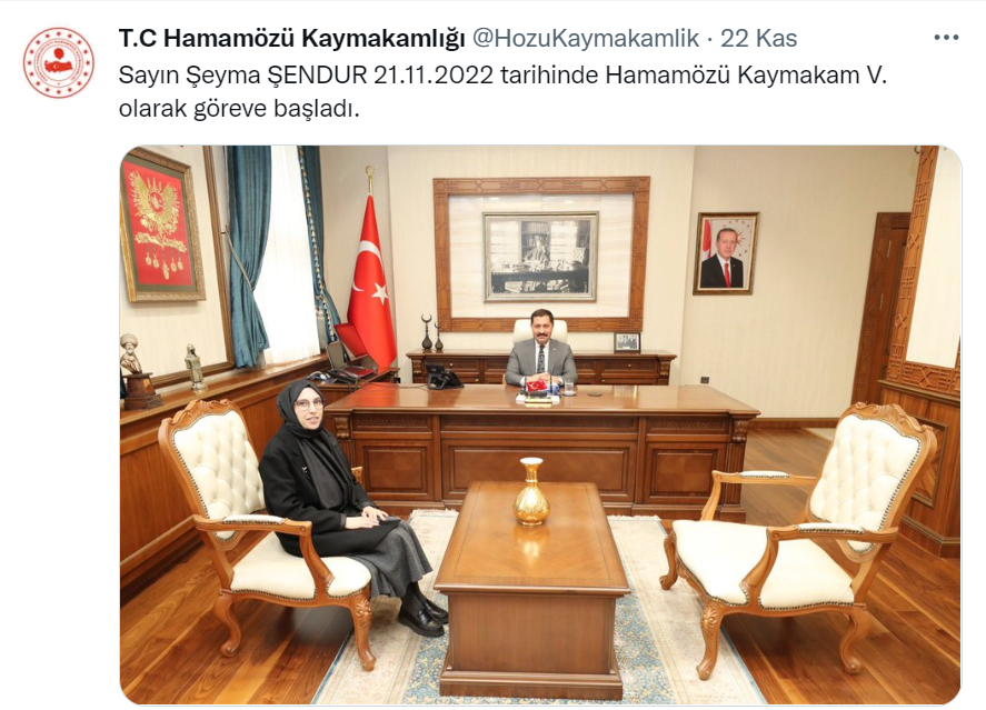 AK Parti Kadın Kolları MKYK üyesi olan Şeyma Şendur, 21 Kasım 2022’de Amasya’nın Hamamözü ilçesine vekil kaymakam olarak atandı.