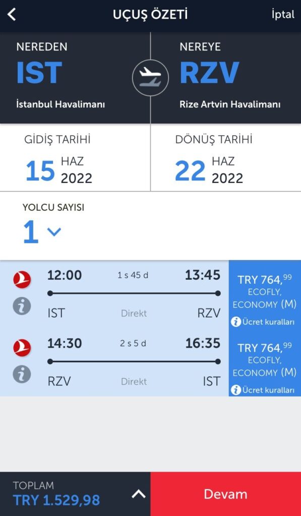 Açılışı bugün gerçekleştirilen Rize Havaalanı’na İstanbul’dan bir ay sonrası için gidiş dönüş bileti almak istenirse bin 500 liranın üzerinde bir rakamı gözden çıkarmak gerekiyor.
