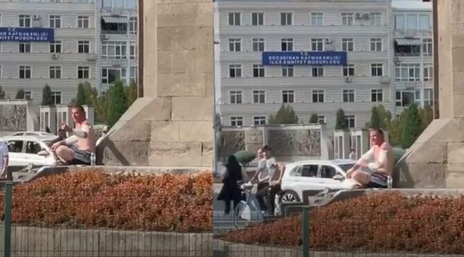Olay, bugün gündüz saatlerinde Kayseri kent merkezinde meydana geldi. Kent meydanındaki bir heykelin dibine oturan vatandaş, “Suriyelilerin karnı tok, benim çoluğum çocuğum aç aç” diyerek kendisini kesmeye başladı.