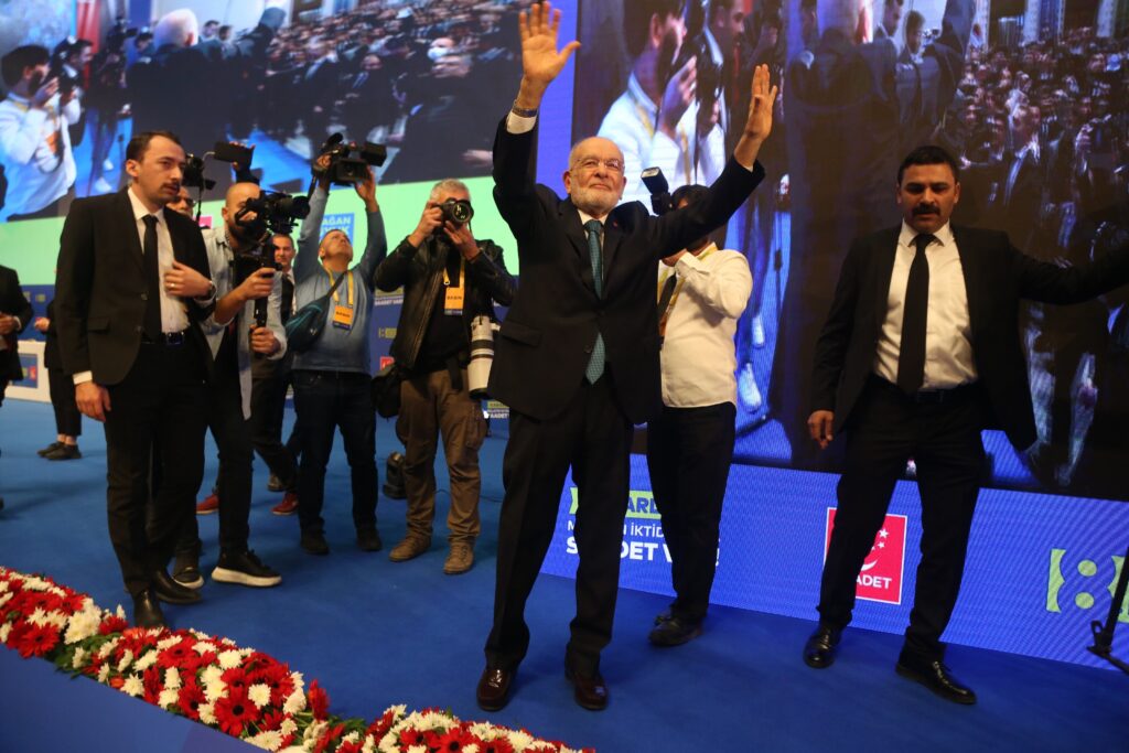 Sinevizyon gösterilerinin ardından Saadet Partisi Genel Başkanı Temel Karamollaoğlu konuşma yapmak üzere kürsüde yerini aldı. Salonda “Bilge Başkan Temel Başkan” sloganları atıldı.