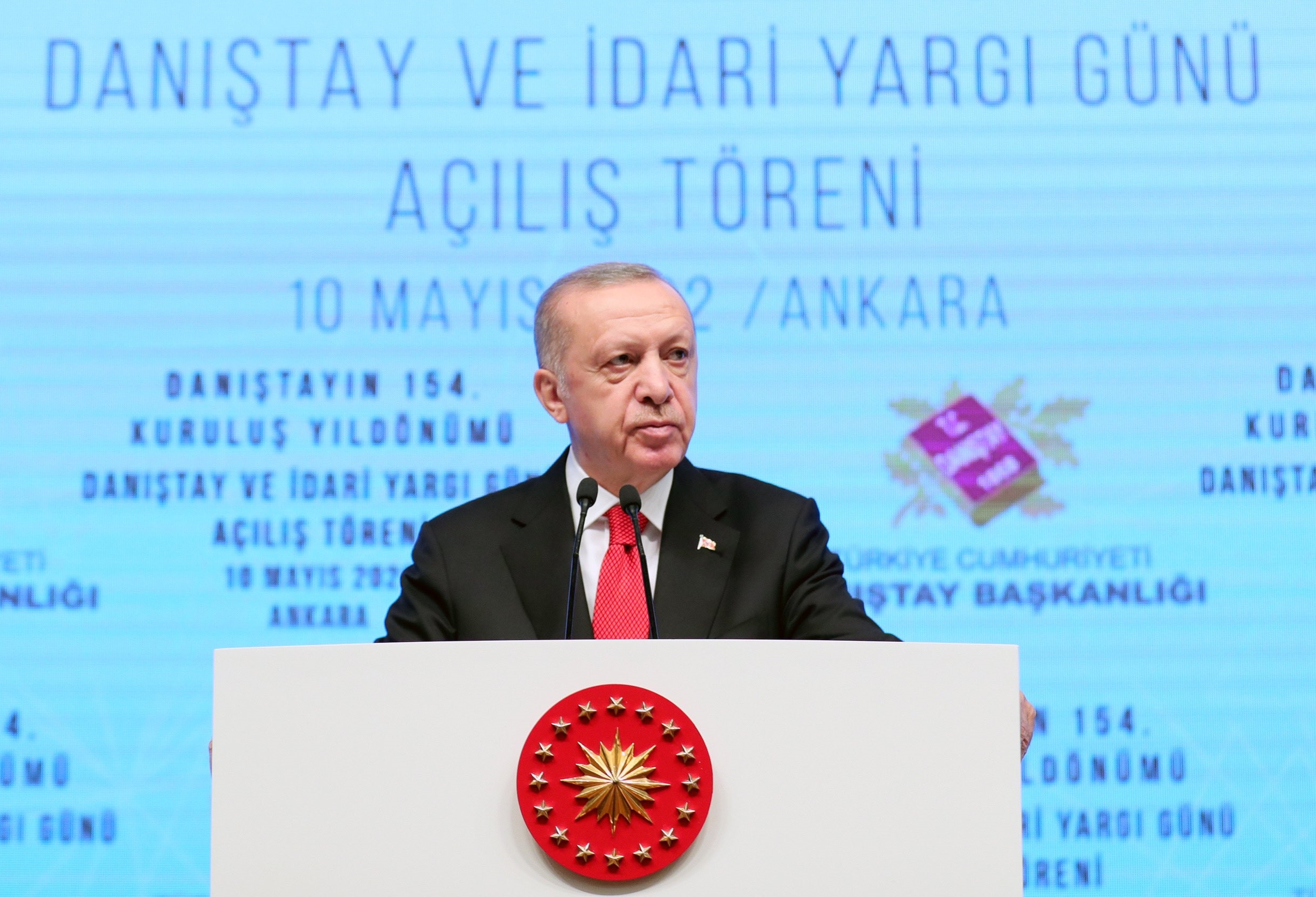Hukuk devleti ilkesinin, demokrasinin olmazsa olmaz şartı olduğunu ifade eden Erdoğan, “Ülke yönetimine geldiğim günden beri Türkiye’nin hukuk devleti niteliğini güçlendirmesinin mücadelesini veriyorum” dedi.